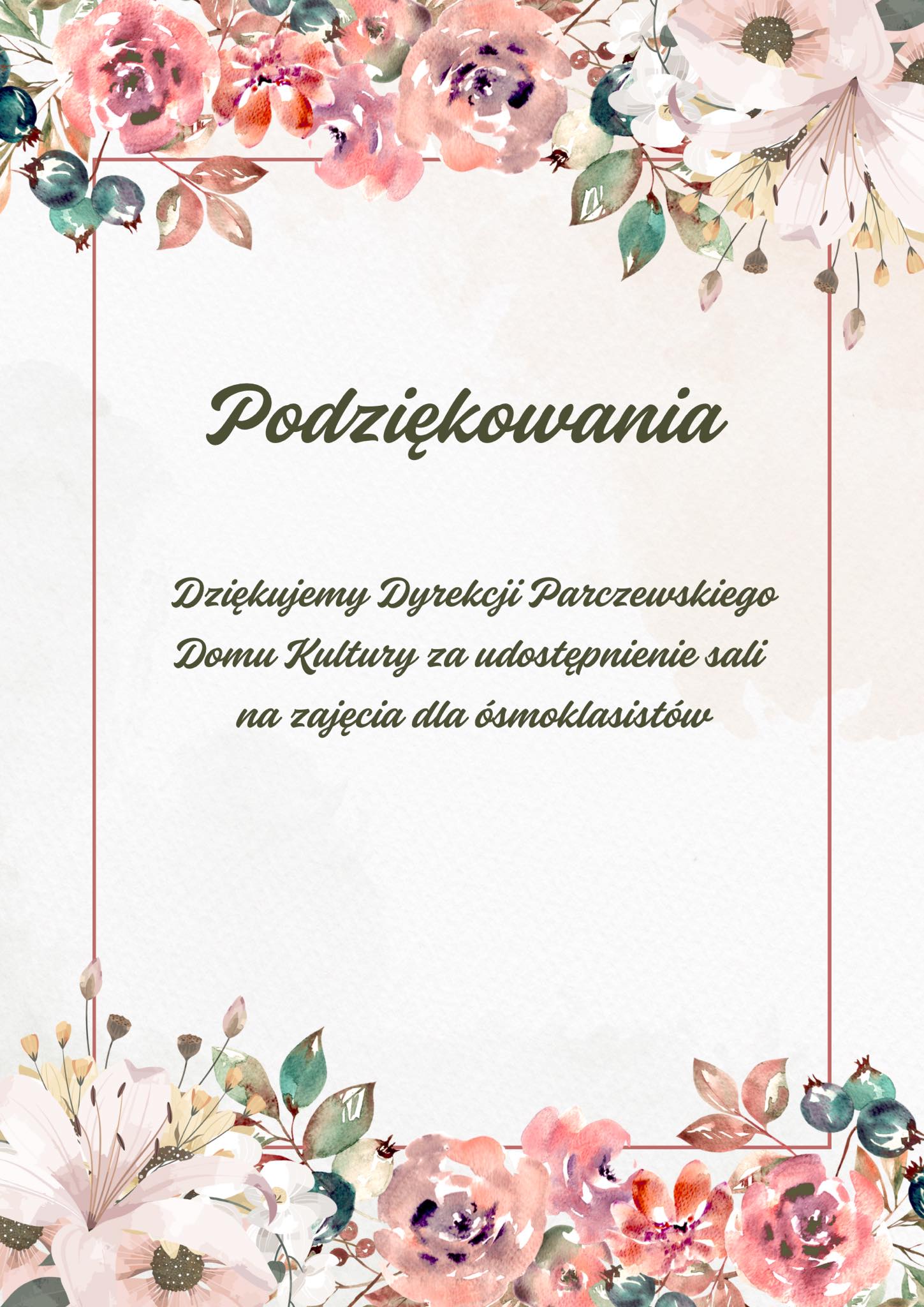 Dziękujemy Dyrekcji Parczewskiego Domu Kultury za udostępnienie salina zajęcia dla ósmoklasistów